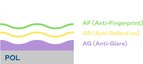 A.R.T.尊龙集团光电发展出独家的表面处理跟多层镀膜技术,,,让外部光线照射到显示器表面时所产生的反射光大幅降低。。 |